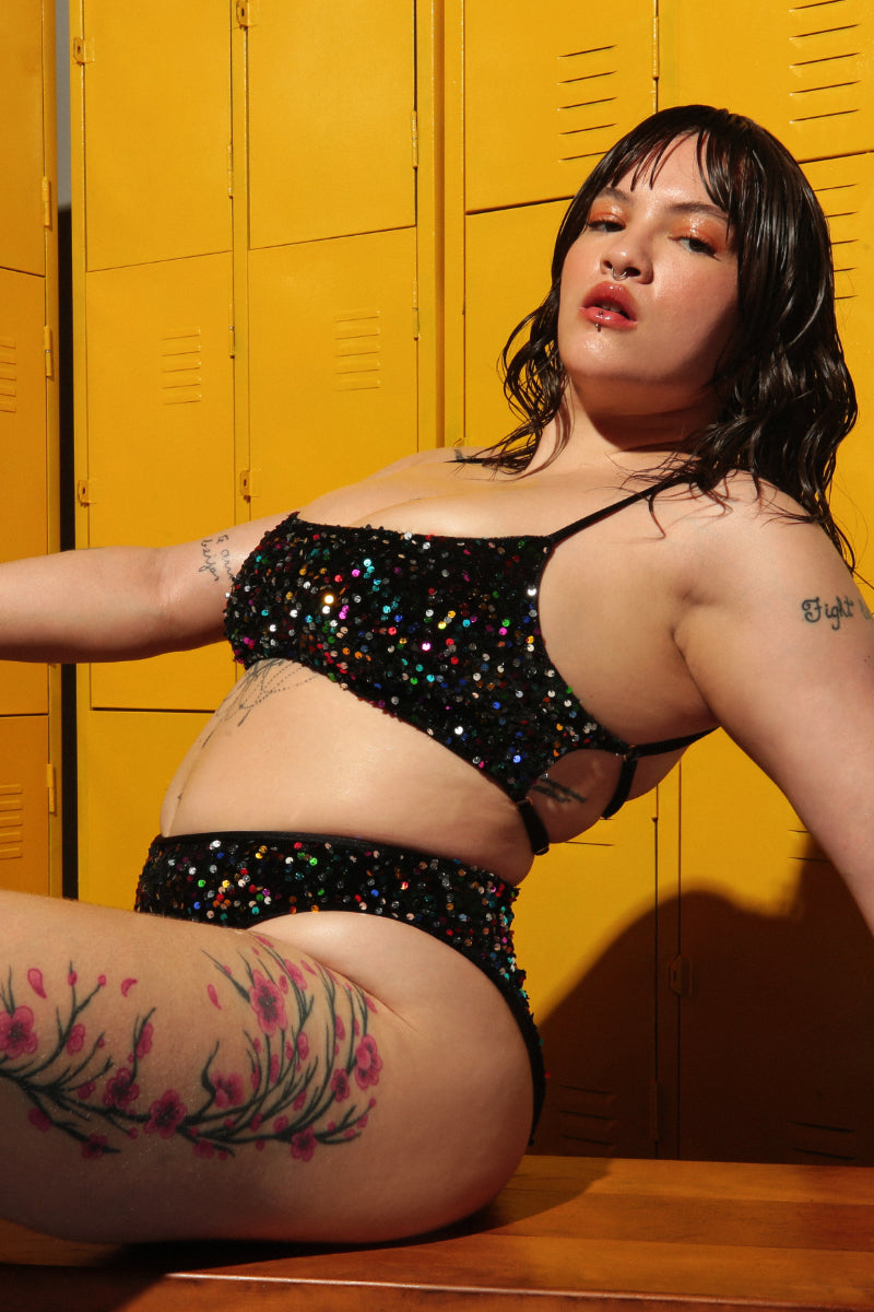 • Tip: Since the sequins are a little stiffer than regular spandex, when indoubt, size up.