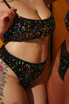 • High waisted | Sequin Details | High Leg Cut | Cheeky Coverage |