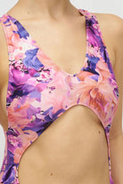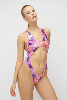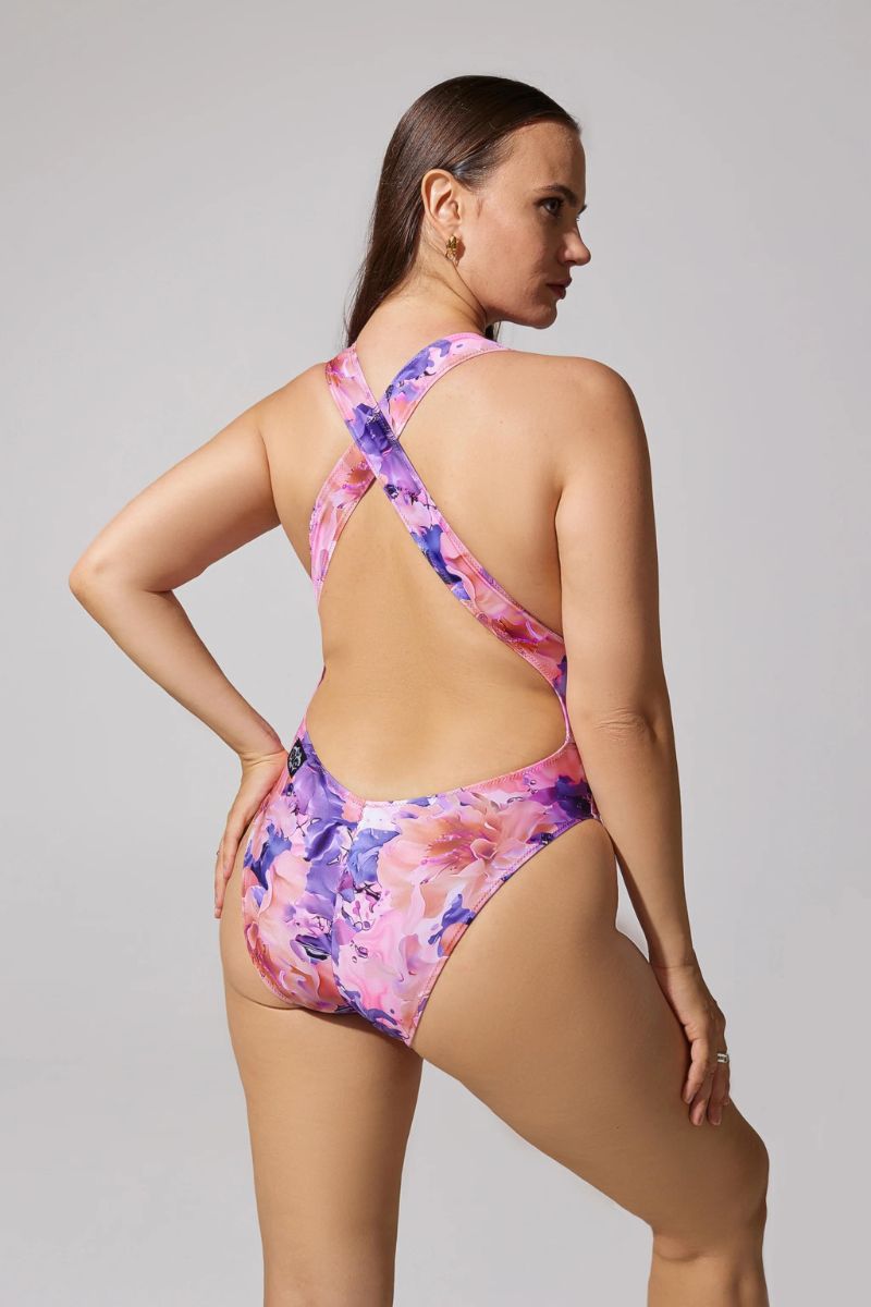 Embrace the dawn's gentle hues with a flirtatiously cheeky cut and cross-back straps that dance with your every move. The high leg cut and cut-out design reveal just the right amount, while the floral print in soft pastels whispers serenity.🌺🌸