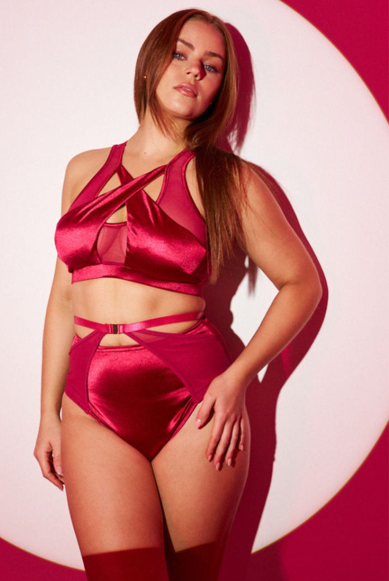 Lunalae Loretta Mesh Cut Out High Waisted Bottoms - Satin Magenta