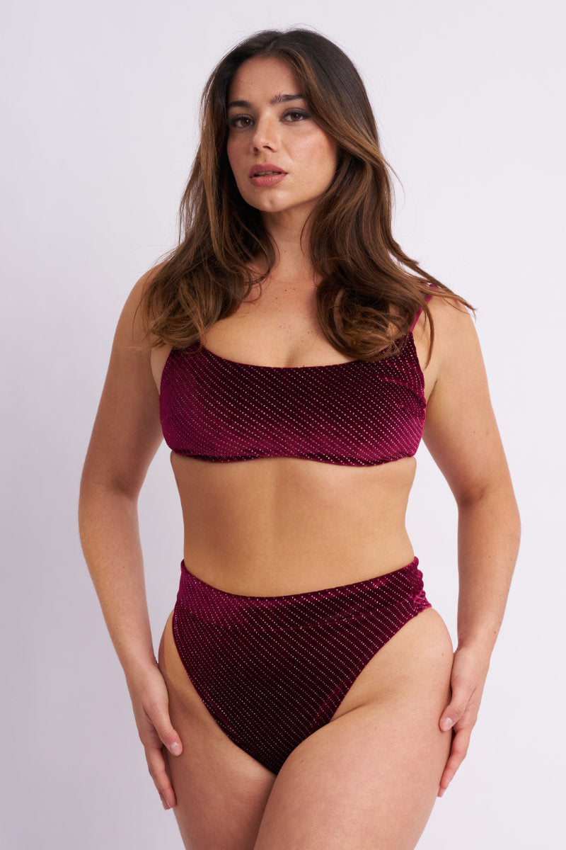 Lunalae May Scrunch Back Top - Wine Silver Sparkle