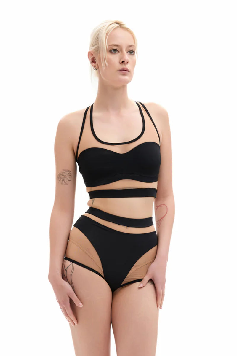 This racerback marvel boasts a square neckline and extra padding pocket, offering full bust coverage with a flirty twist. The mesh fabric and rough waistband keep you secure yet daring—because playing it safe isn't in your playbook.