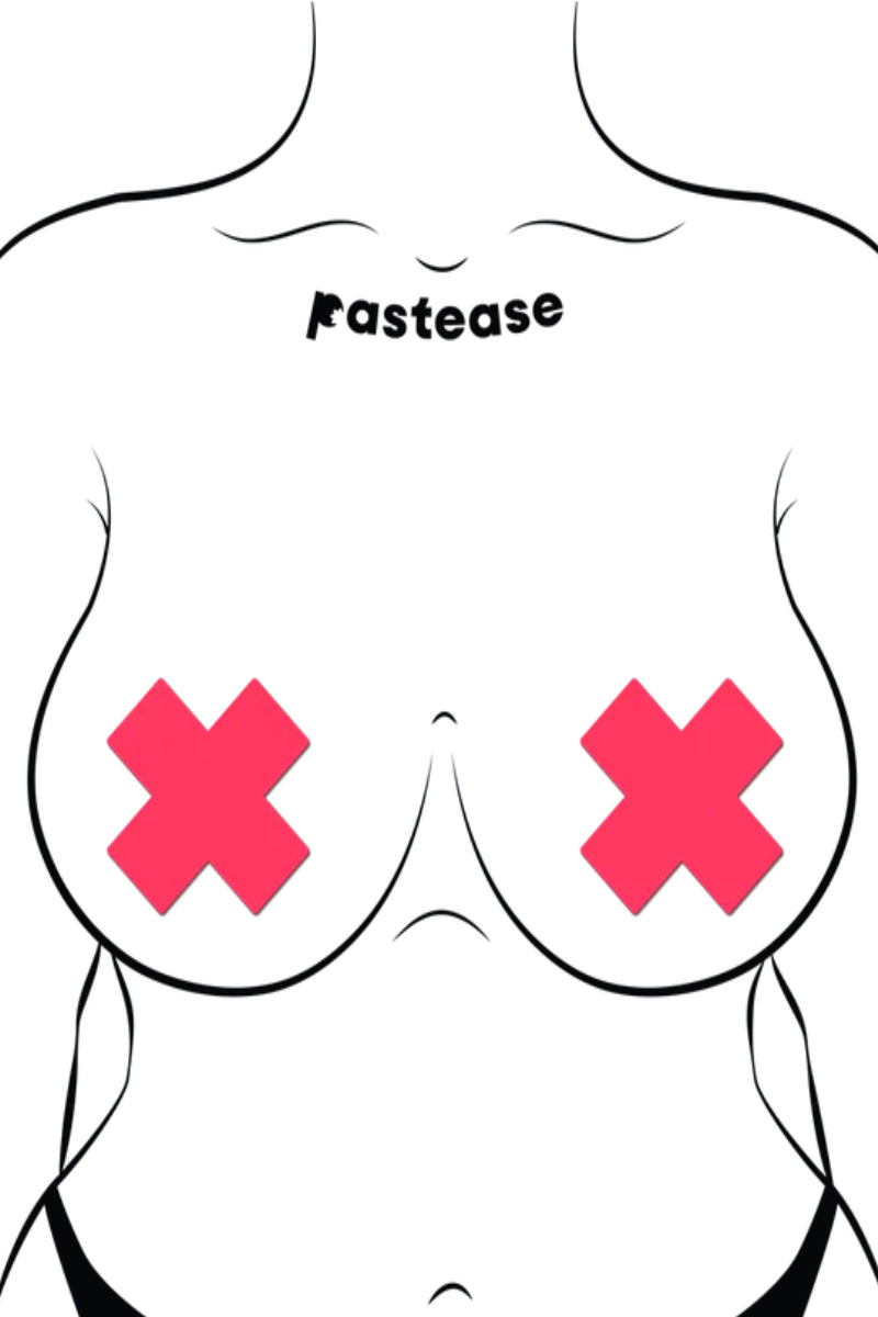 Introducing the Pastease Glow in the Dark Cross Nipple Pasties - Neon Pink