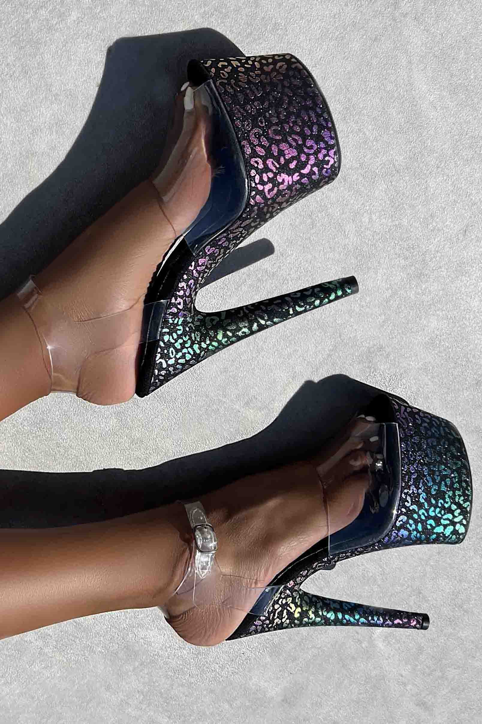 Hella Heels Moonlight Leopard 7inch Stilettos - Iridescent