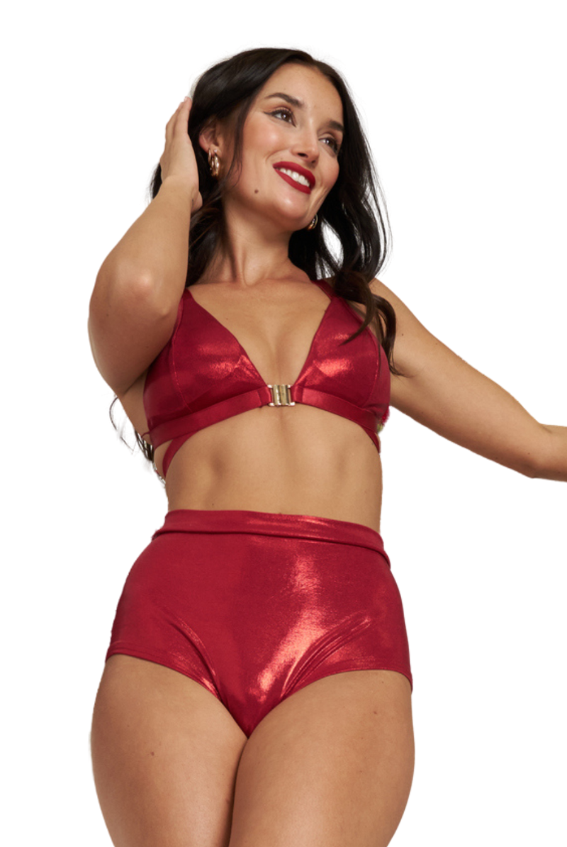 Lunalae Lure You High Waisted Garter Shorts - Metallic Red