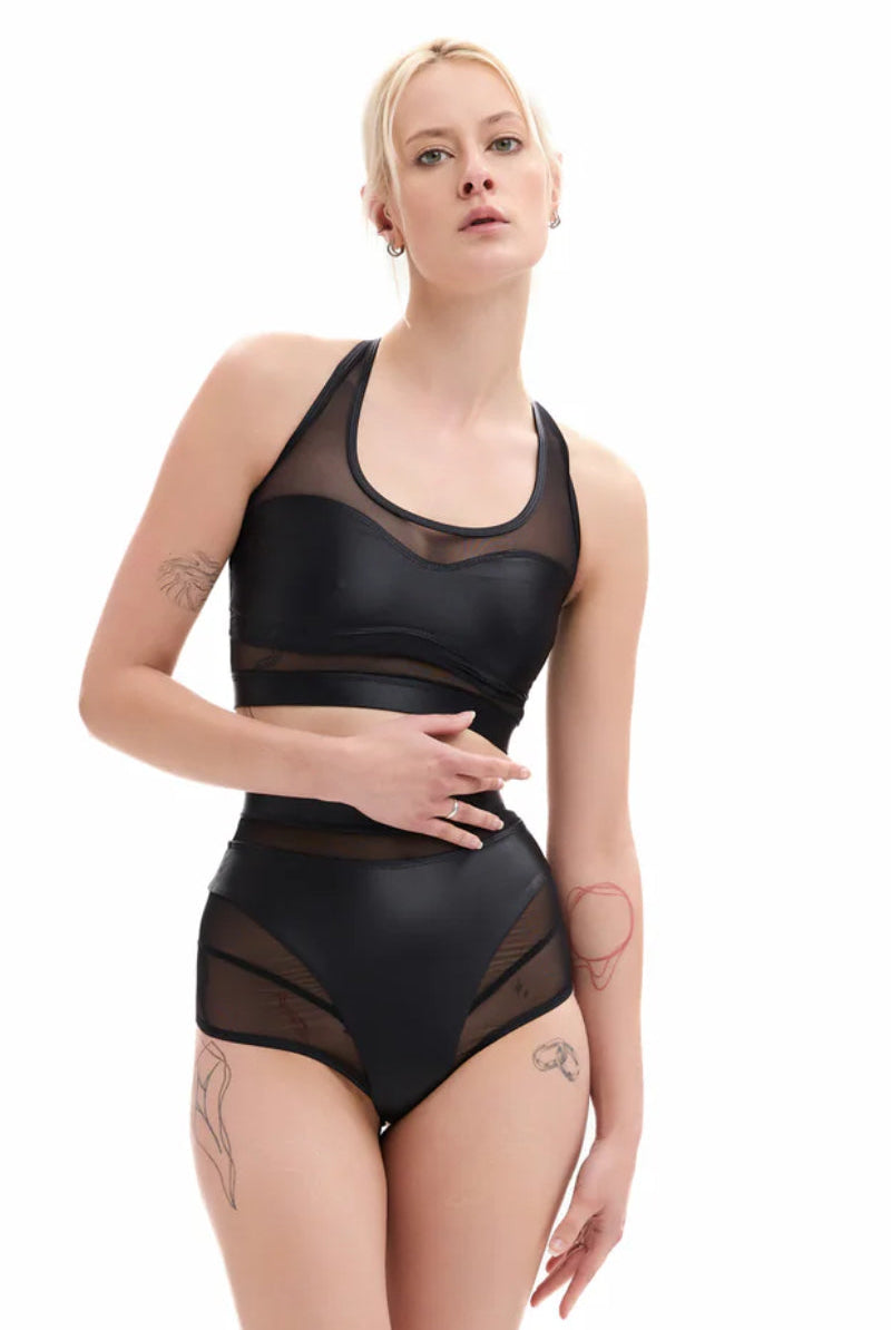 CXIX Silhouette High Waist Bottoms - Black with Cream Mesh
