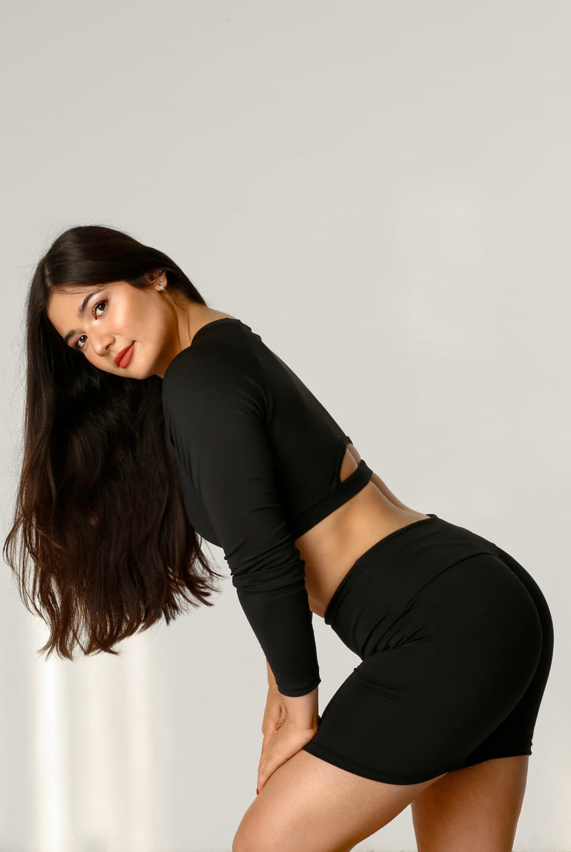 Lunalae Carla Mesh High Waisted Hot Pants - Recycled Black
