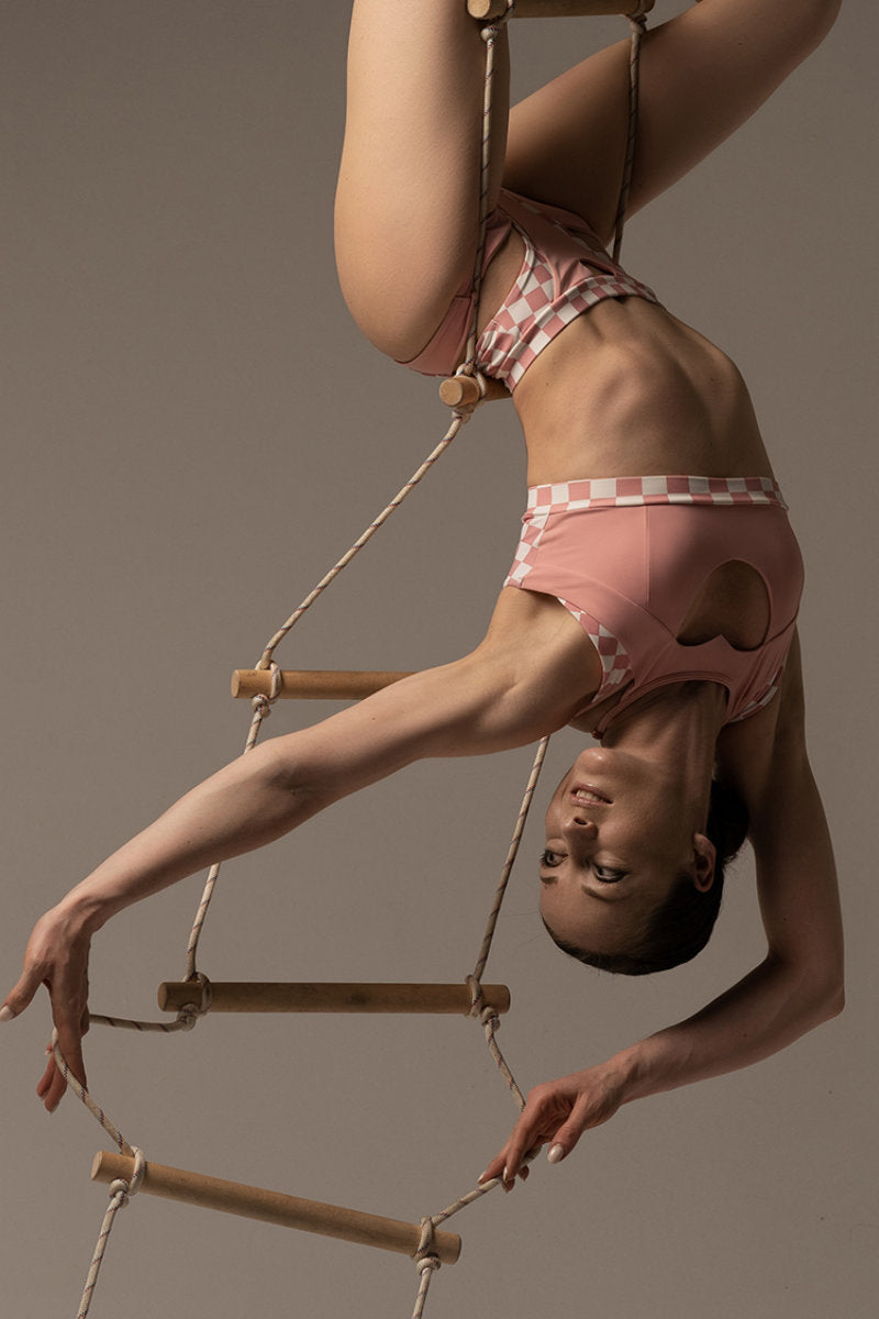 Hamade Activewear Heart Cut Out Top - Checkered Light Pink