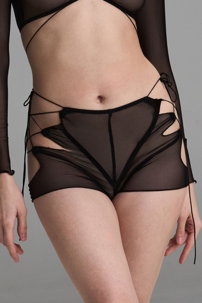 Own the stage with these high-waisted beauties! The bold black mesh screams confidence, while the adjustable drawstring sides give you total controlātease or slay, it's your call.