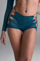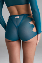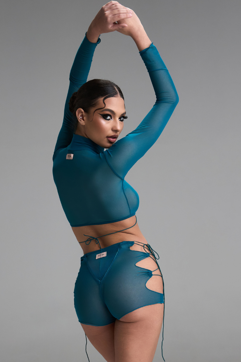 Bold, breathable, and completely badass—these high-waisted beauties bring the drama with teal mesh and adjustable drawstring sides. Flaunt your vibe, your way!