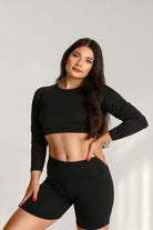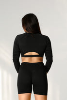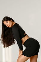 • Cropped Top | Stretchy | High Neckline | Long Sleeves |