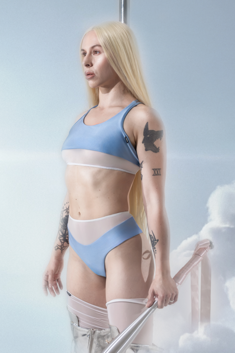 With a cropped, body-hugging silhouette, this top is your second skin. A lower elastic band offers a sculpted hold beneath the mesh, while adjustable straps provide a custom fit. This double-layered design is engineered for your world, moving with you whether you're dancing, swimming, or owning the pole.