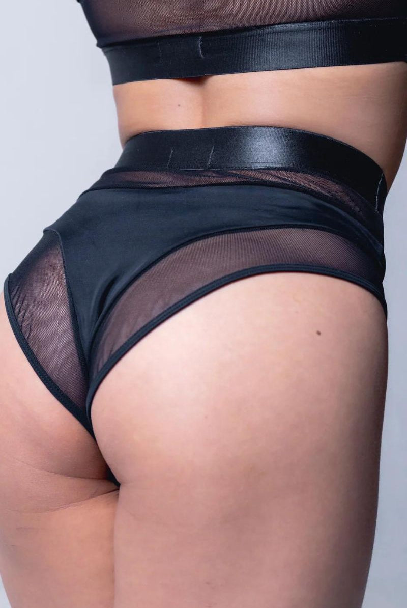Queen Wear Candy High Waisted Shorts - Black Mesh