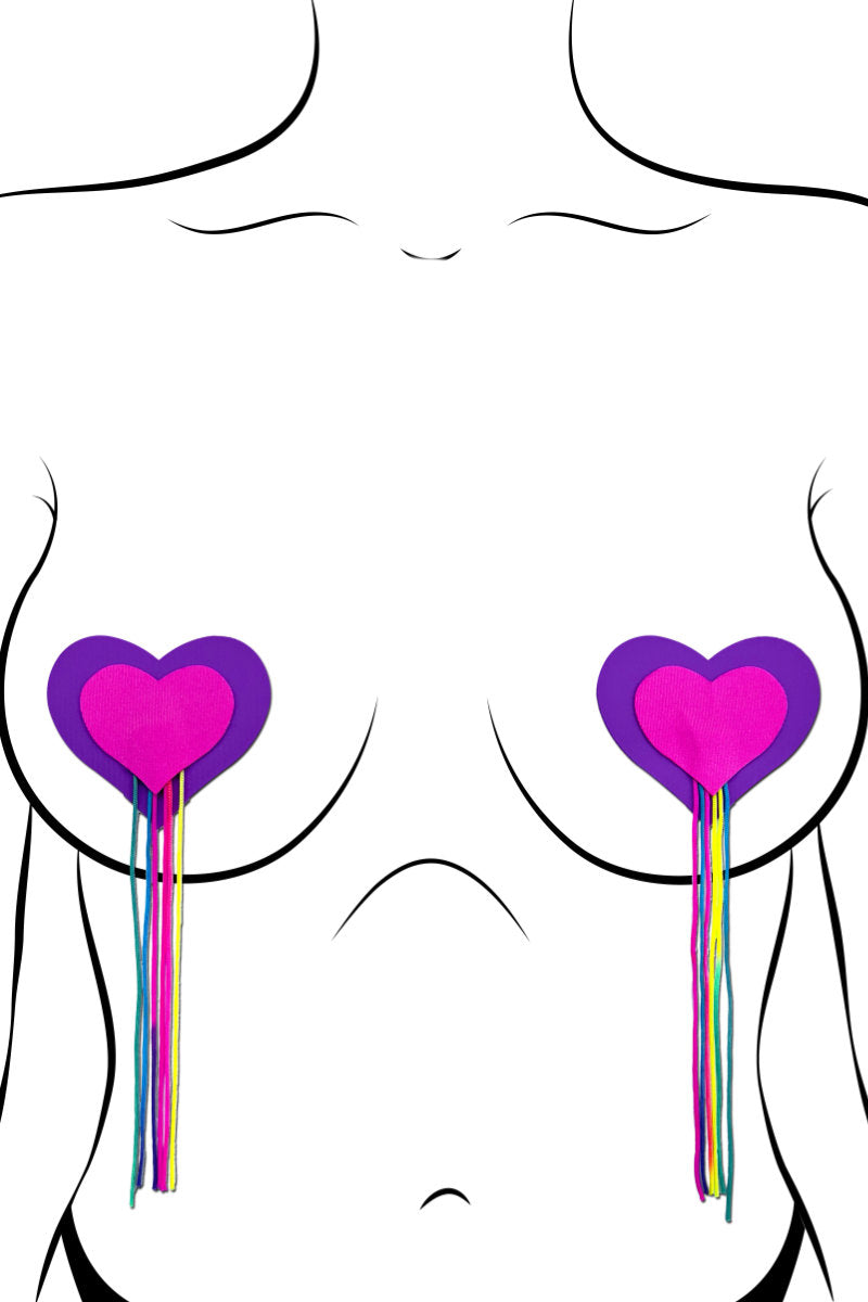 Pastease Heart Rainbow Tassle Nipple Pasties – Pink & Purple