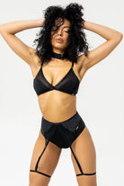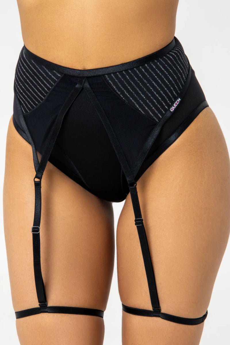 Discover the rare beautiful of the Queen Garter Belt in Black Diamond. Designed to enhance your pole dance attire, it features adjustable elastic straps and a convenient front clasp for a flawless fit. Upgrade your look with this seductive accessory.