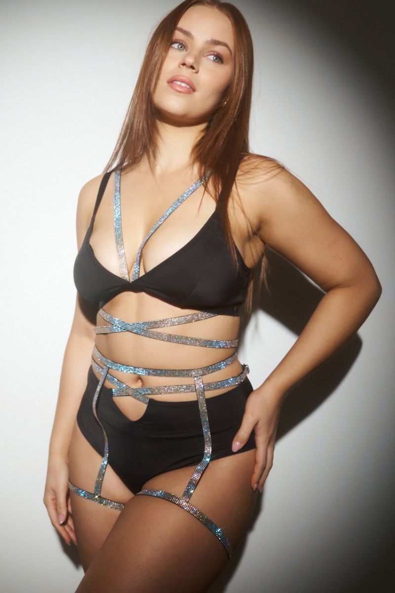 CXIX Aphrodite Bodysuit - Mojito Iridescent Rhinestone Drip