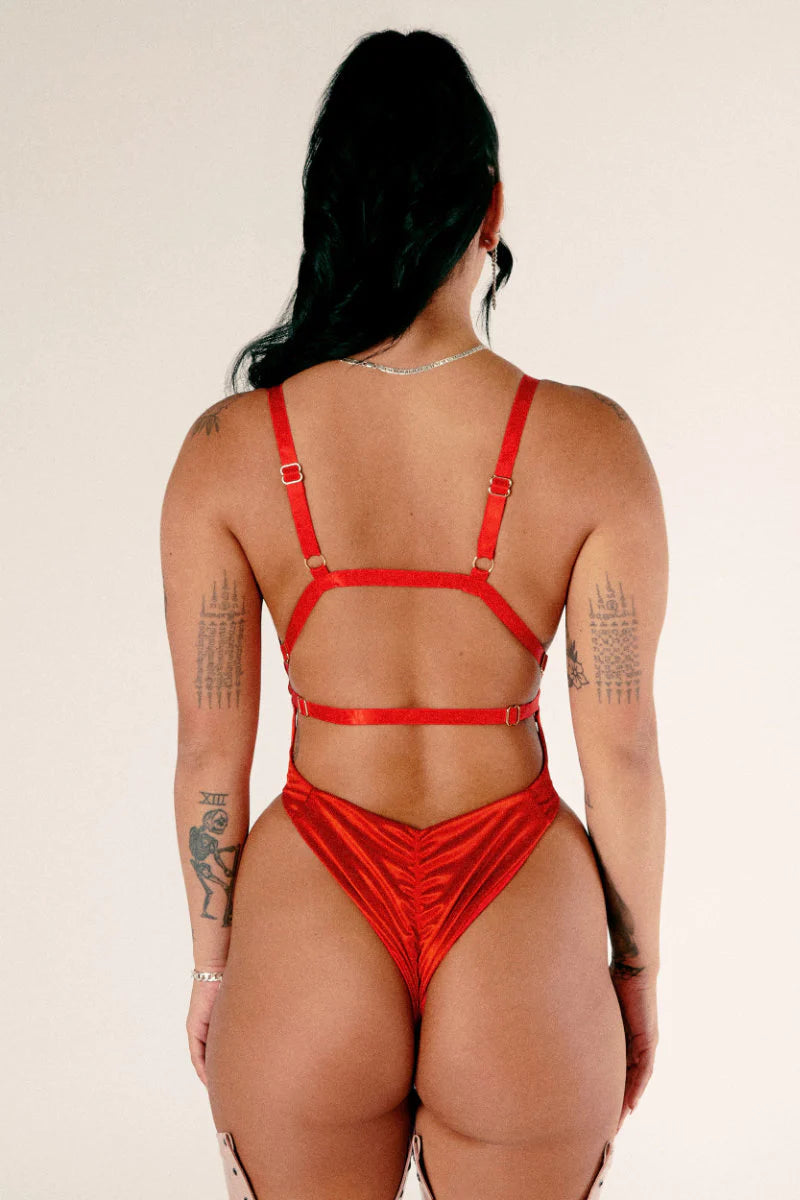 CXIX Aphrodite Bodysuit - Maroon Suede