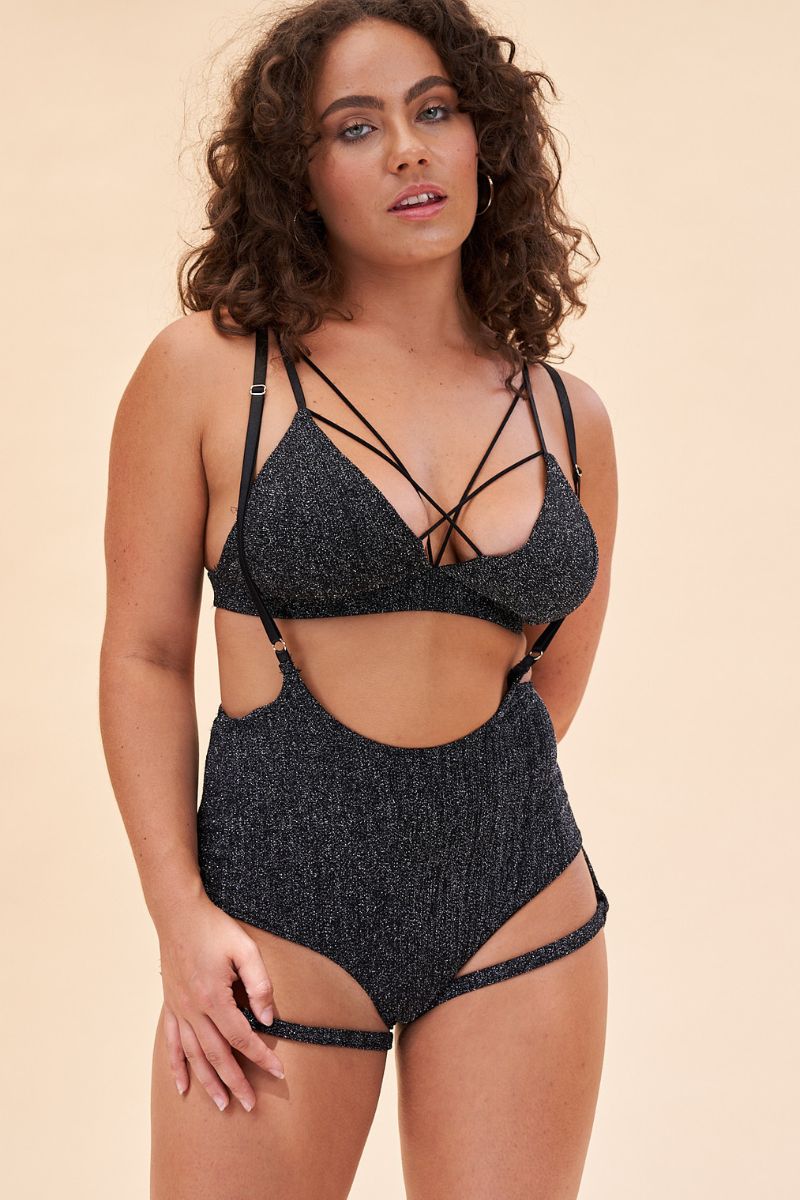 Lunalae Zena Garter Overall Sling Bottoms - Crystal Black