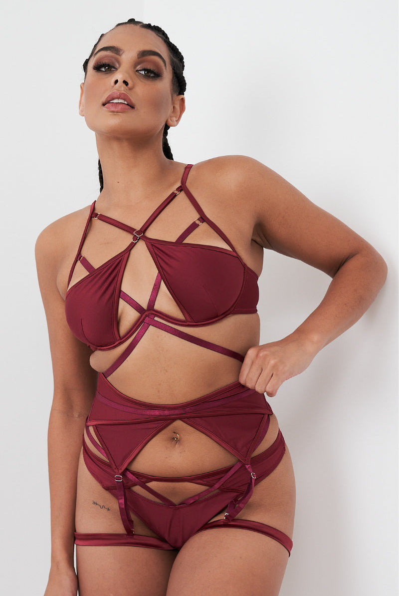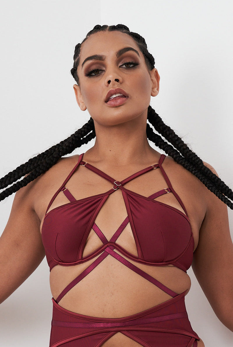 Lunalae Intimates Lauren Strappy Cut Out Adjustable Bra - Recycled Wine