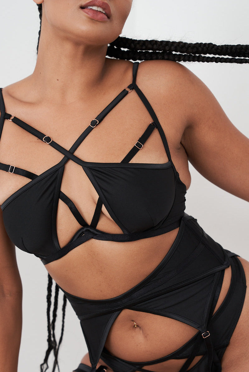 Lunalae Intimates Lauren Strappy Cut Out Adjustable Bra - Recycled Black