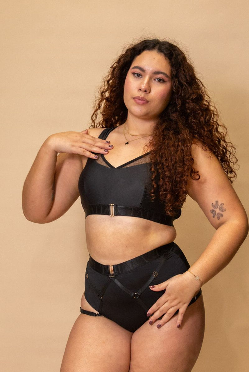 Tatiana Active Magnus Long Sleeve Bodysuit - Black Mesh
