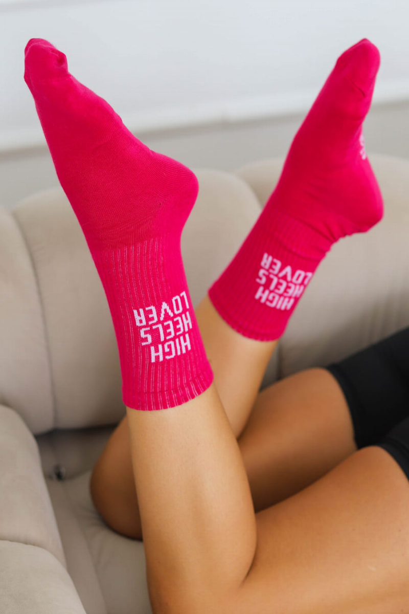 Keep your toes toasty while dreaming of your next pair of heels. These minimalist crew socks are for the dedicated "High Heels Lover." In a statement hot pink, they’re the perfect blend of cozy comfort and rebellious style for your off-duty days.