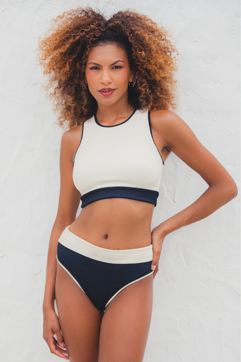 • Retro Design | High Waisted | Cheeky Cut | High Leg | Colour Block | Double Lined