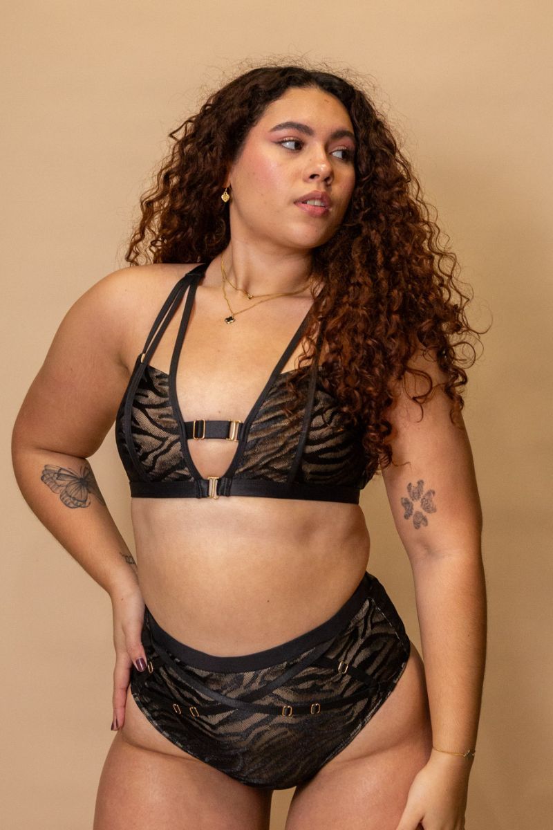 Unleash your power in Zanda featuring a unique zebra mesh overlay, signature gold hardware and a high cut leg for the most flattering of silhouettes. Match it with the Zanda Top to complete the look.