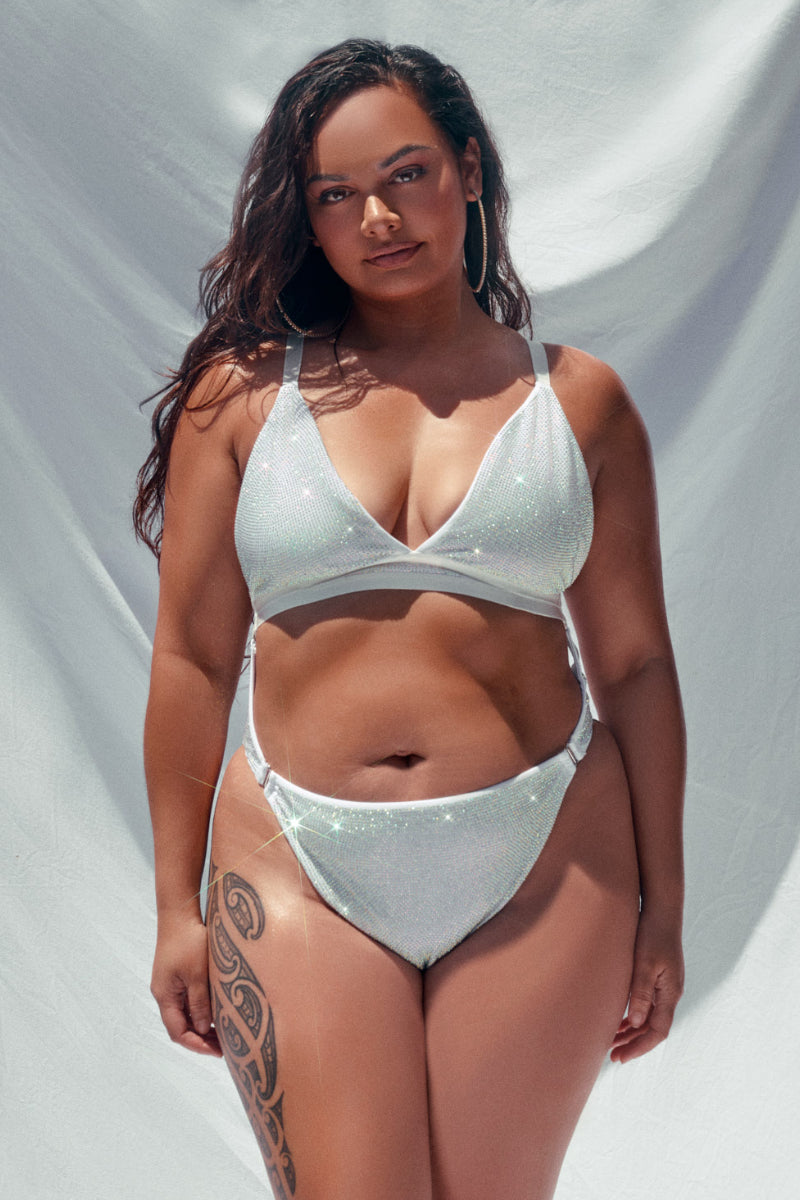 CXIX's Bestselling Bodysuit of all time is back in a one time limited edition release, dripping with sparkling iridescent rhinestones.
