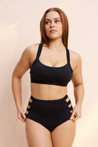 Lunalae Clover Side Strap High Waist Bottoms - Black