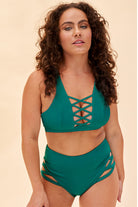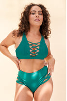 Lunalae High Waist Cross Section Shorts - Green