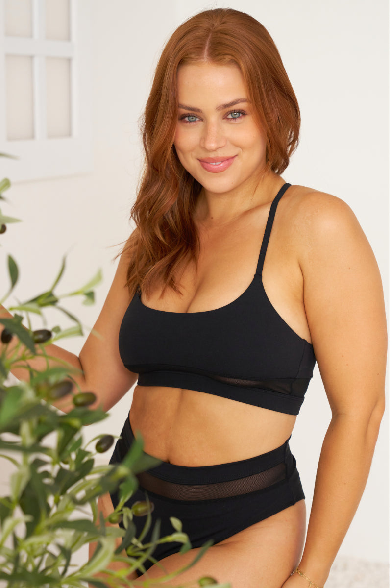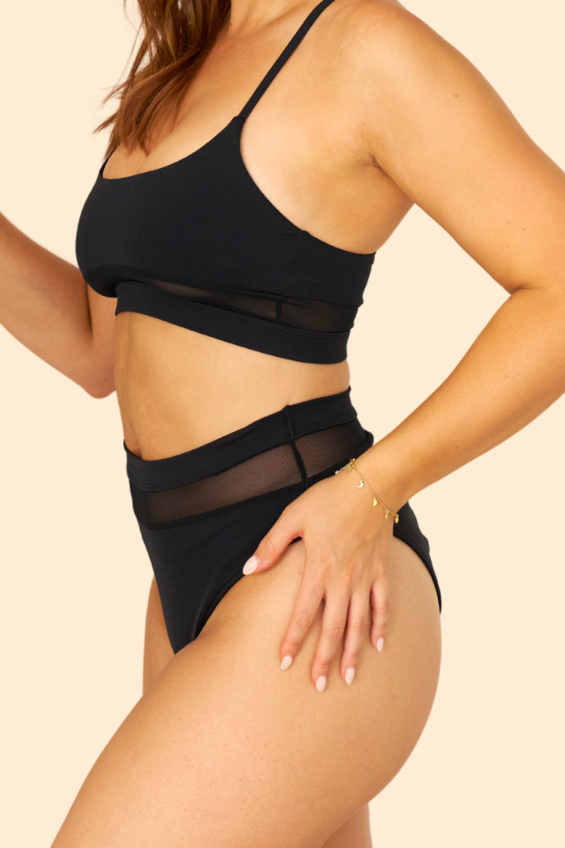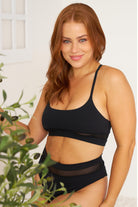 Lunalae Maeve Mesh Cut Out High Waist Bottoms - Black