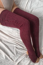 Rolling Cable Knit Thigh High Leg Warmers - Burgundy